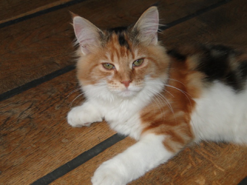 A part la couture, quoi de neuf? Et bien notre Virgile ayant disparu dans la nature, nous avons décidé de reprendre un chat, mais cette fois-ci, une femelle qui ne sortira pas de la maison. On a craqué pour une petite Maine Coon qu’on a nommée Cassiopée. Elle est très belle, très douce mais aussi très jeune donc elle fait n’importe quoi: et que je te mange les fils électriques, les aiguilles circulaires, le tissu, enfin tout ce qu’elle trouve, et que je fais mine de t’attaquer dès que tu passes… Enfin elle est drôle… et tellement jolie…