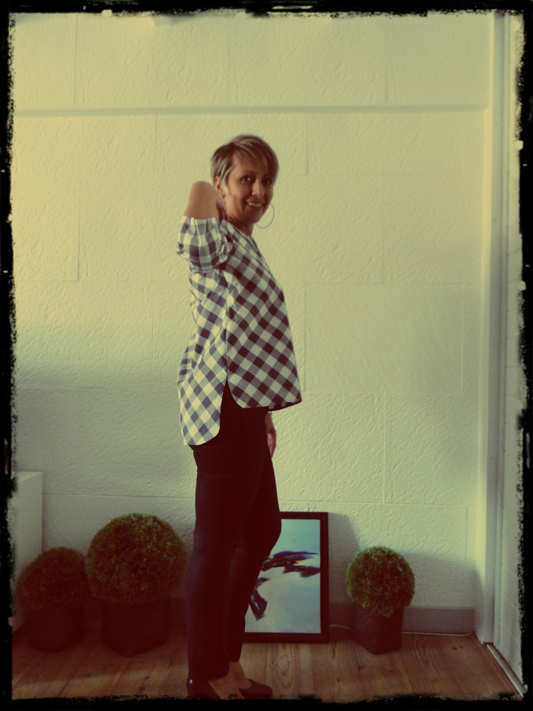J’avais imaginé ajouter des petites poches mais comme j’ai choisi de la réaliser dans du gros carreaux vichy, j’ai pensé qu’il valait mieux rester sobre… Je pourrais ajouter mes poches sur des versions unies.