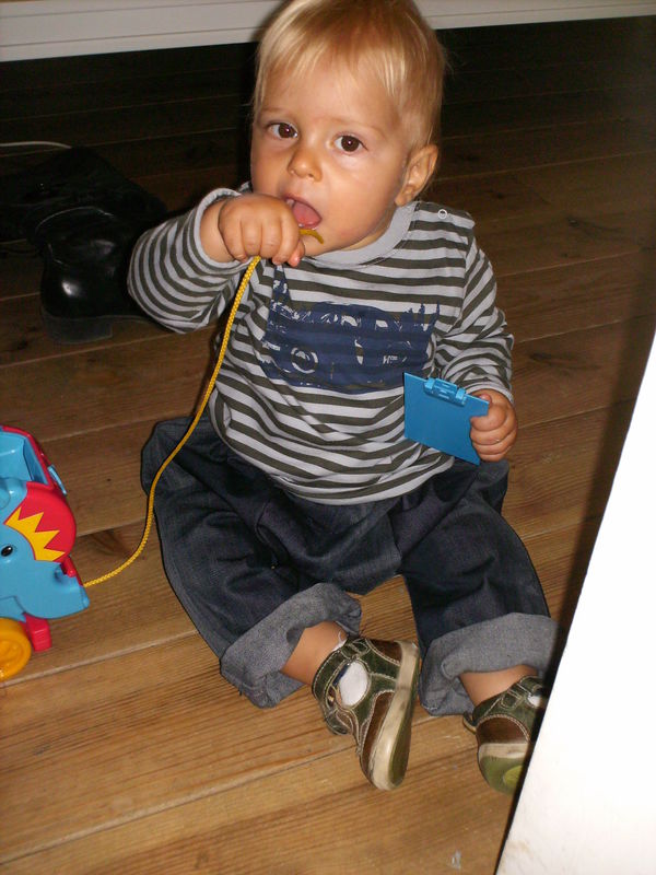 Pas de sieste pour les loustics cet après-midi, ils n’ont pas voulu dormir, même Gaspard!! Alors pas le temps de faire grand chose!! Juste une petite photo d’un “sarouel” bidouillé pour Gaspard dans un jeans troué de zom.